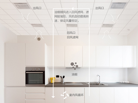 机组可智能检测风口油烟脏堵程度,并自动匹配风机转速,保证风量