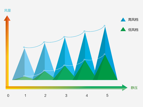 特设五种风量组合,大小风量随心选择,每组风量搭配高低风挡,调节平滑精准,实现更舒适的制冷效果。